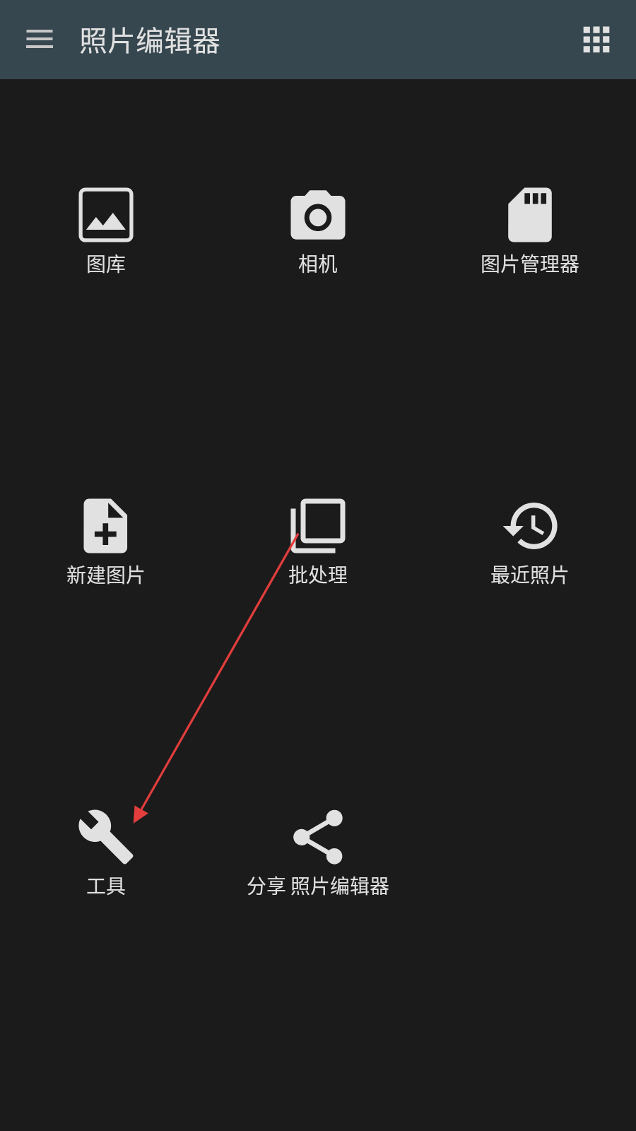 1、打开照片编辑器,点击工具选项进入工具页面。