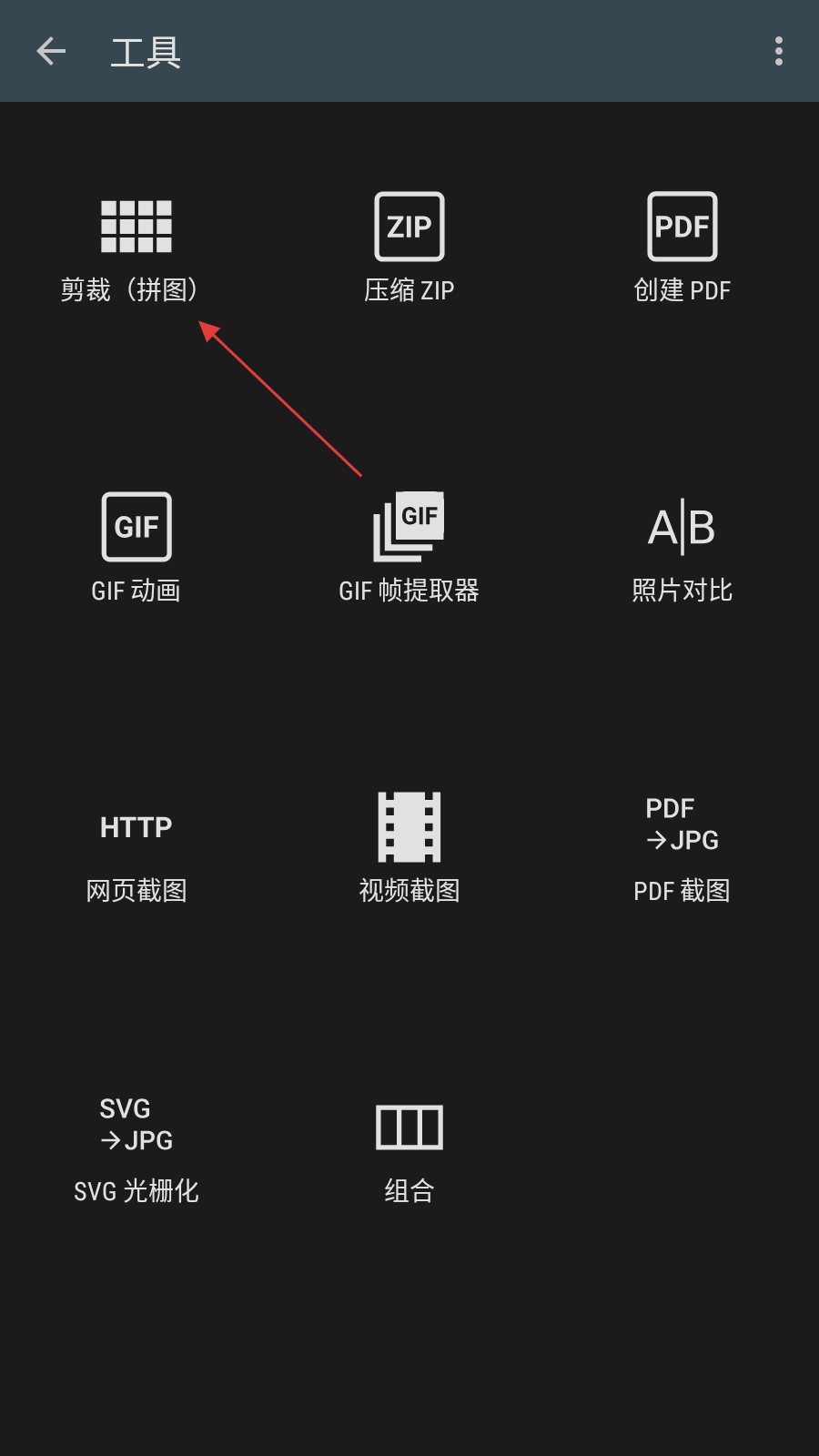 2、在工具页面,点击剪裁拼图功能进入对应界面。
