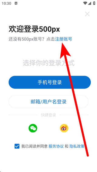 3、在欢迎登录页面,点击注册账号,进入注册方式页面。