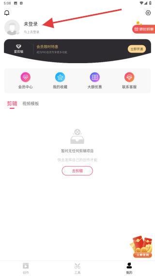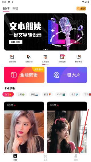 1、打开爱剪辑APP,点击底部导航栏我的。