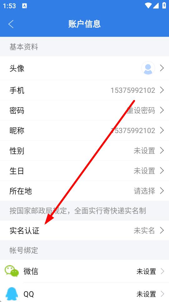 4、在账号设置的账户信息页面里,找到实名认证选项,点击未实名入口,按照后续提示完成实名认证操作。