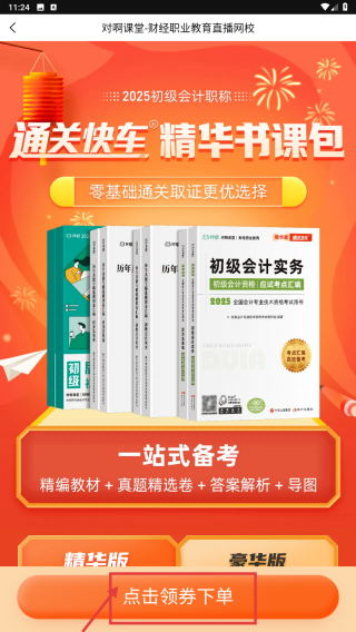 4、在教材详情页面,点击点击领券下单按钮,完成该初级会计教材的选购操作。