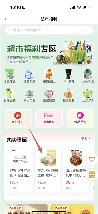 2、在超市福利页面,选择要购买的商品,进入商品详情页面。