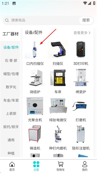 2、在分类页面,选择设备配件下的口内扫描仪,进入对应商品列表页。
