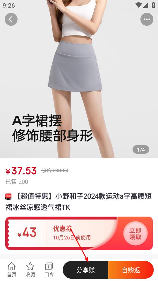4、在商品详情页,可点击分享赚按钮进行分享返券操作。