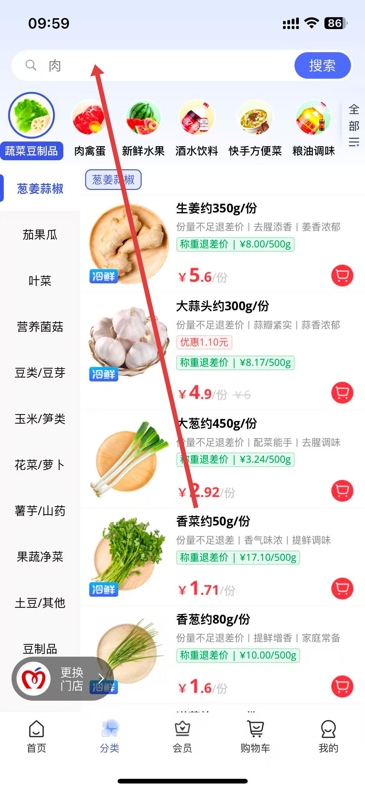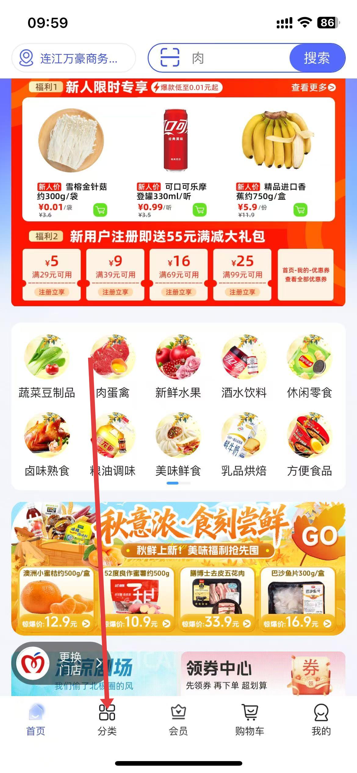 1、打开美好买菜App,点击底部导航栏中的分类选项。
