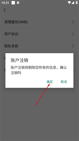 4、在确认提示框中点击确定,完成账号注销操作。