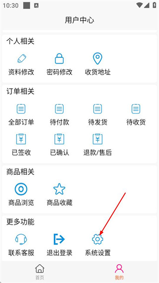 2、在用户中心页面点击系统设置,进入设置界面。
