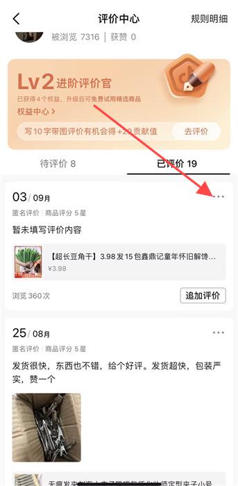 3、在跳转页面之后,切换到【已评价】页面,可以看到之前的所有评价内容,找到评价后方的按钮;