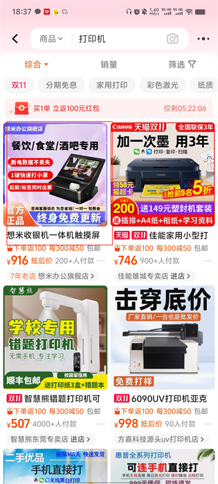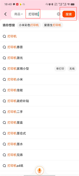 2、如用户需要购买打印机,则在搜索框内进行【打印机】字样的输入,输入后点击右侧的【搜索】按钮;