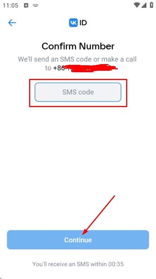 2、在EnterPhoneNumber页面填写手机号码后,点击Continue按钮,进入确认号码的页面。