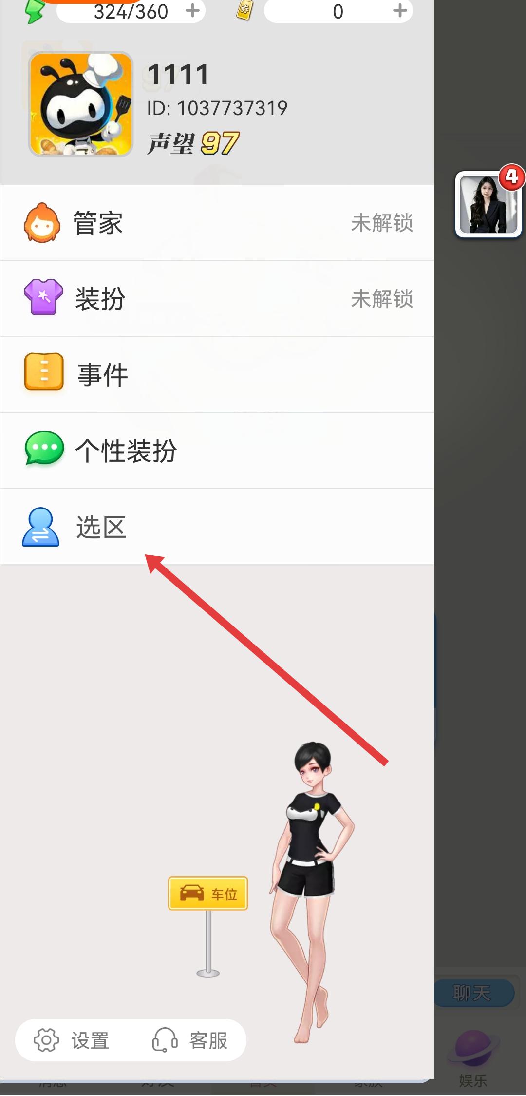 2、在侧边的菜单中,需要点击选区的选项,进入选区的界面。