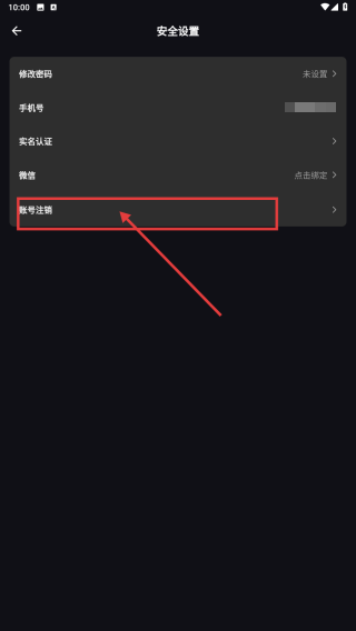 4、在安全设置页面,点击账号注销选项,发起账号注销操作。