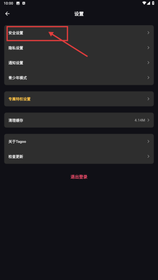 3、在设置页面,点击安全设置选项,进入安全管理页。