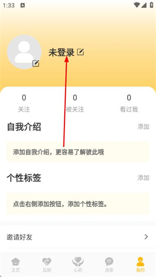 2、在个人页面点击未登录,进入心愈的登录界面。