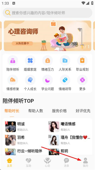 涵盖恋爱情感、失恋陪护、婚姻修复、职场发展、亲子教育、情绪压力等多类服务,从日常情感困扰到专业心理问题,全方位对接用户不同场景的咨询需求。