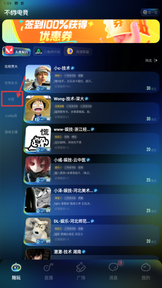 2、在页面中选择声优分类,浏览该分类下的陪玩人员或服务。