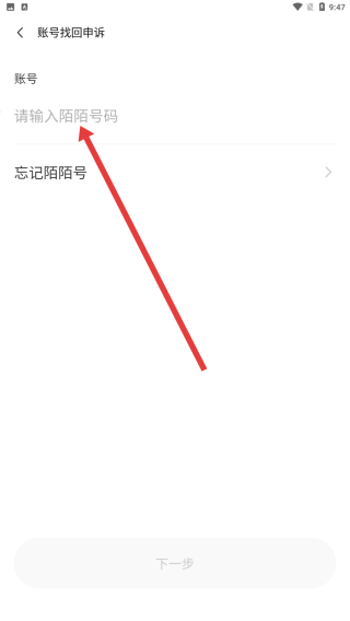 3、在账号找回申诉页面的输入框填写陌陌号码,为账号找回申诉的下一步操作做准备。