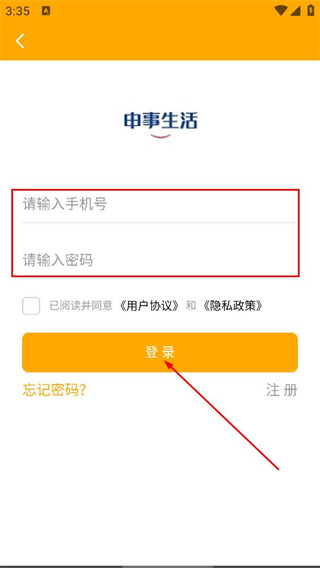 4、在登录页面,填写手机号和密码,点击登录完成账号登录。