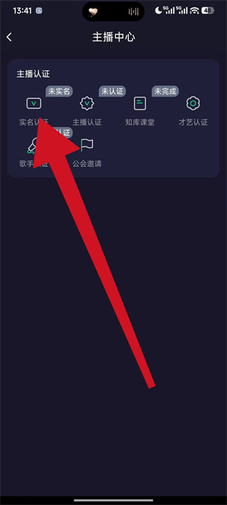 4、在主播中心的主播认证板块,点击实名认证,按照页面提示提交对应信息,完成实名认证操作。