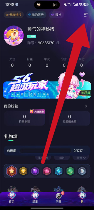 2、在个人页面点击右上角的菜单按钮,展开功能菜单。