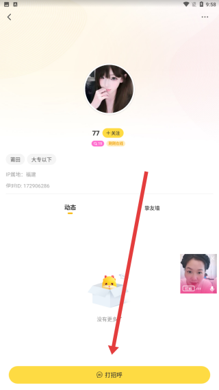 2、在进入到这个用户空间中时,可以点击下方的打招呼按钮,进行打招呼。