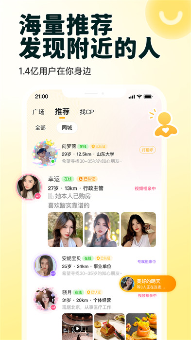 全新的导航结构,为你推荐百里挑一的俊男美女,让恋爱变得简简单单;