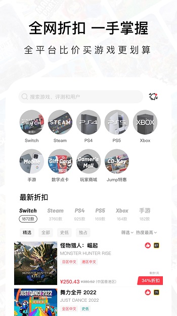 Jump是全球千万玩家好评推荐的主机和PC游戏比价神器,目前已支持SwitchSteam平台,PS5/PS4/xbox/Epic等平台即将上线。抢先下载体验,3A大作半价入手,史低游戏天天有,一年省出一部iPhone12!