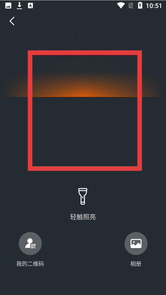 3、进入扫码界面后,将摄像头对准二维码,也可打开手电筒辅助扫码,扫码成功后即可扫码登录。
