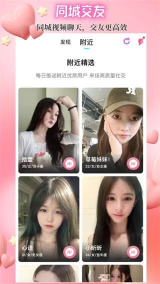 精准同城定位搭配智能匹配算法,快速链接身边志同道合的年轻伙伴,无需漫长等待与筛选,大幅提升同城交友成功率,让线下互动、近距离社交更易实现。