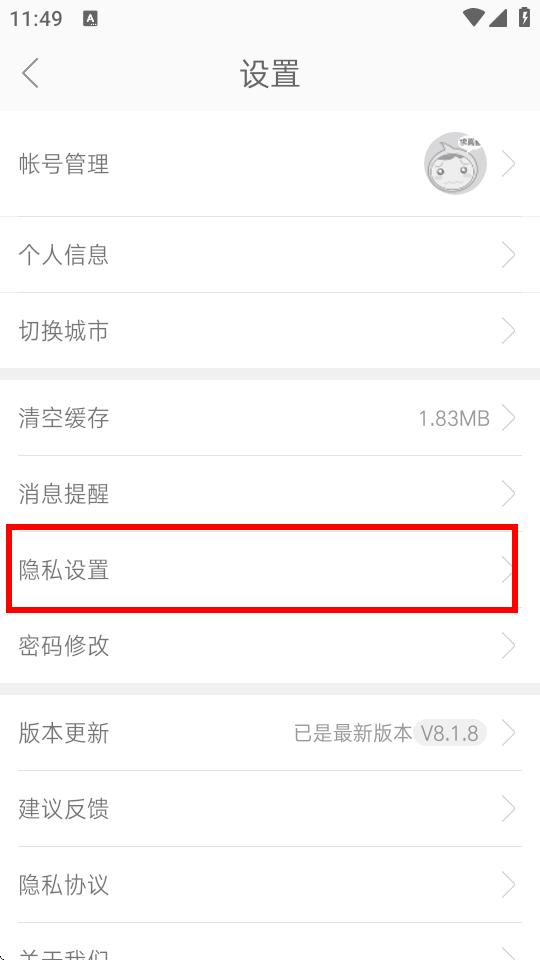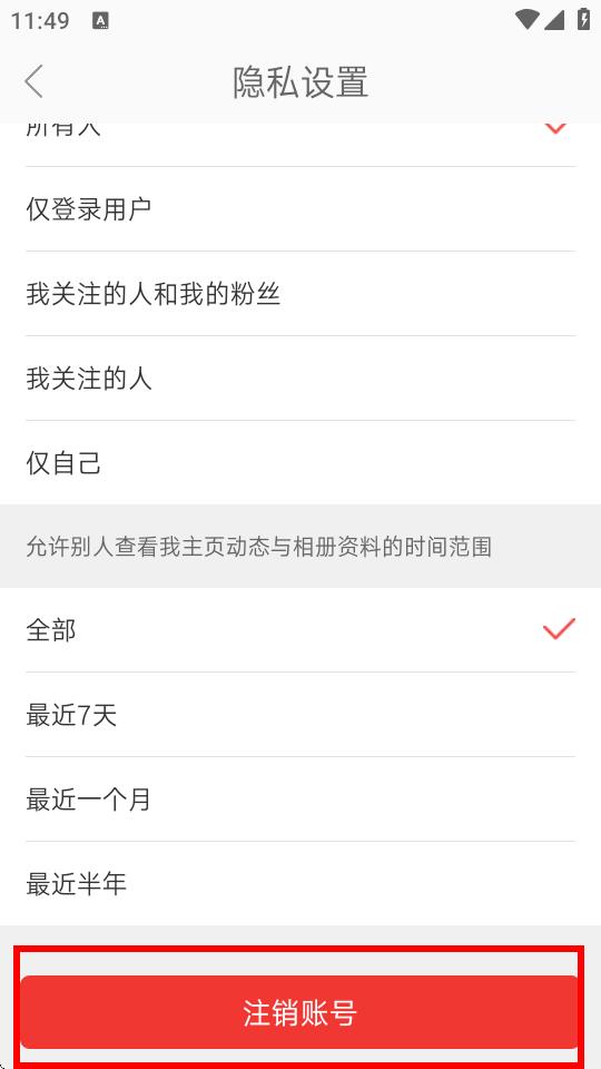 4、在隐私设置界面底部,点击注销账号按钮,按照提示操作完成账号注销。