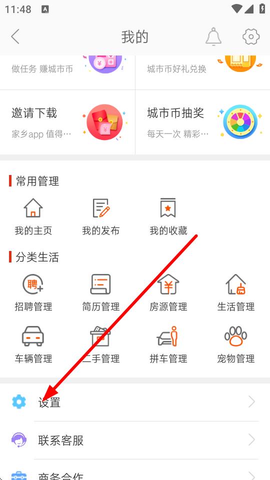 2、进入我的页面后,滑动屏幕找到并点击设置选项。