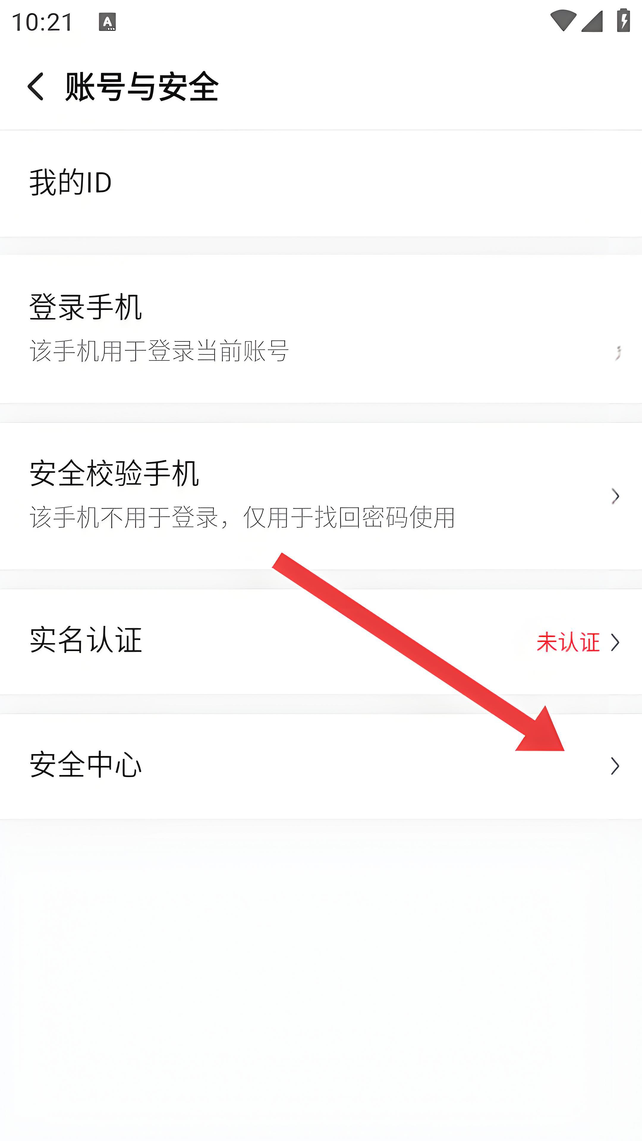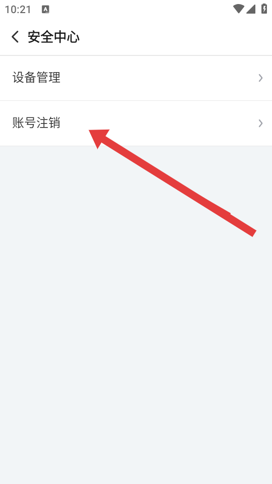 4、在安全中心的页面,点击账号注销选项,随后按照页面提示完成后续注销流程。