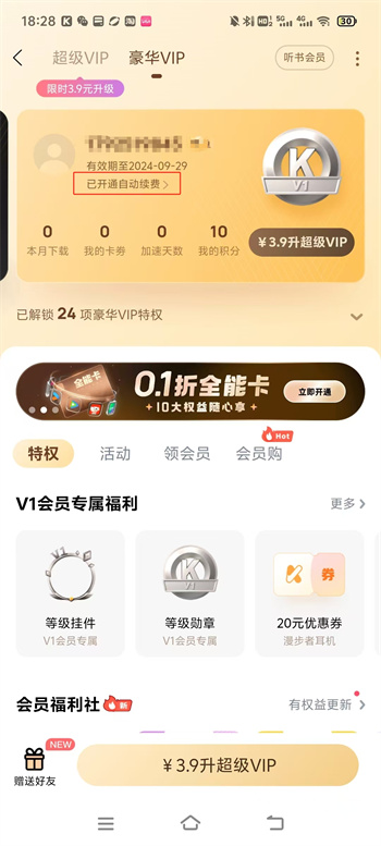 3、继续点击方框中的【已开通自动续费】文字,前往到一下步的页面中;