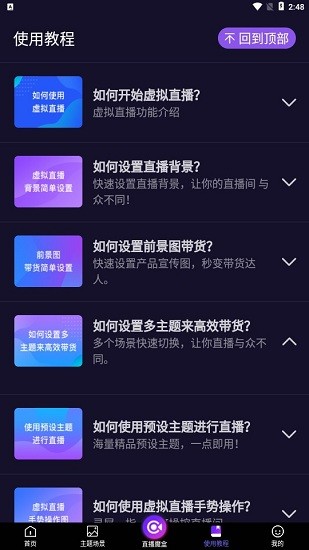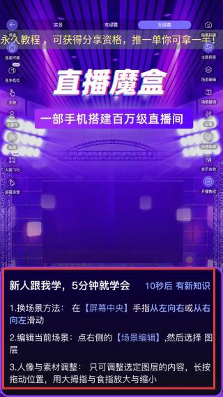 4、进入直播间,新人可根据下列教程进行操作,熟知后可开启直播。