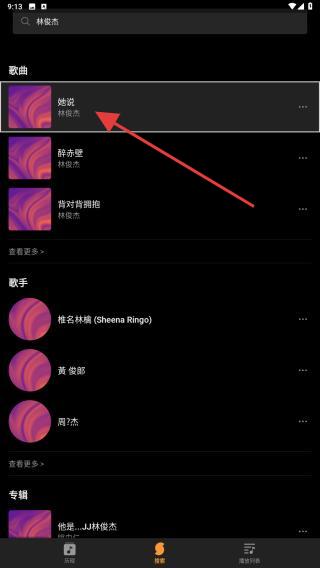 3、在搜索结果里,用户需找到并点击目标歌曲。