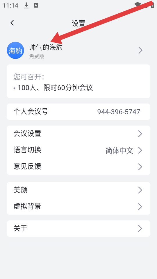 1、打开网易会议APP,点击页面右下角设置图标,进入设置界面后,点击顶部头像及昵称区域,进入个人中心。