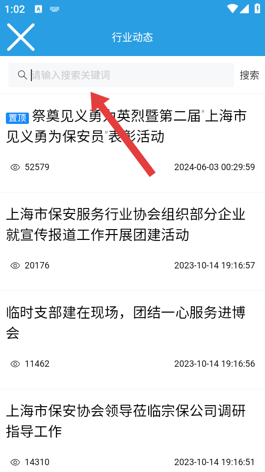 2、在行业动态页面顶部的请输入搜索关键词输入框中,录入关键词,搜索相关行业动态资讯。