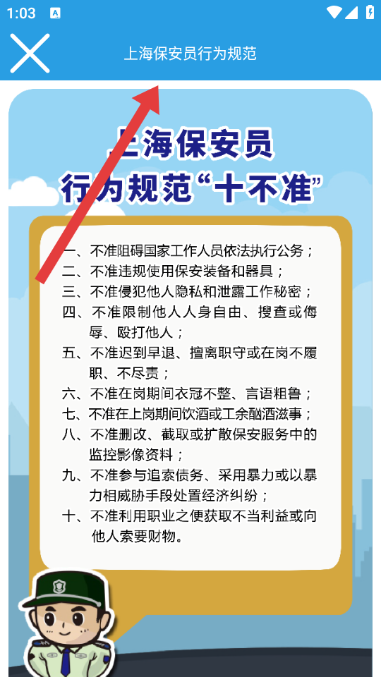 3、打开上海保安员行为规范的详情页,开始查看上海保安员行为规范十不准等职业行为准则内容。