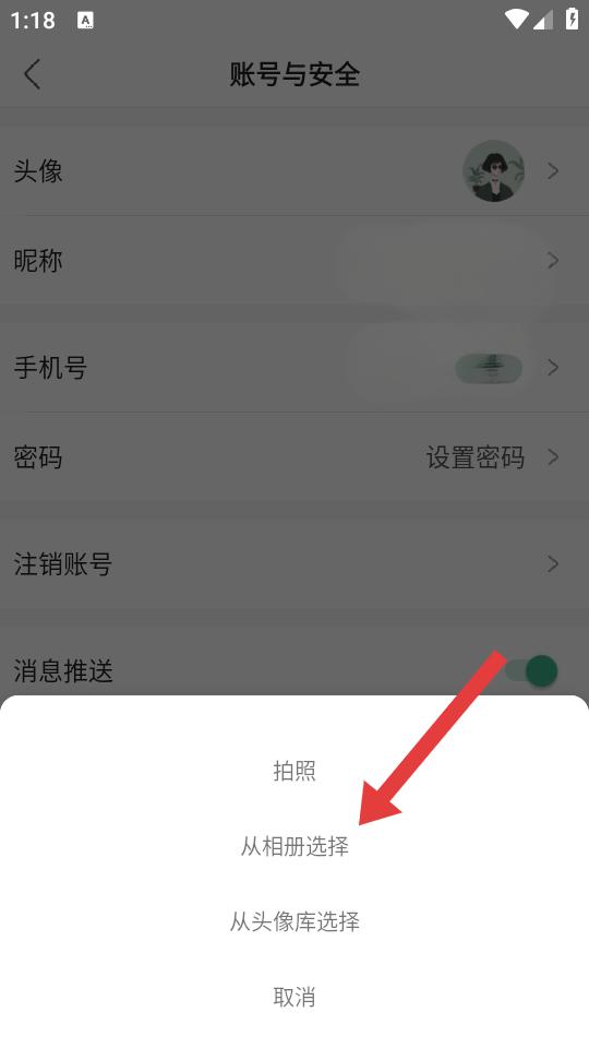 3、在账号与安全页面,点击头像选项,弹出头像更换的来源选择框。