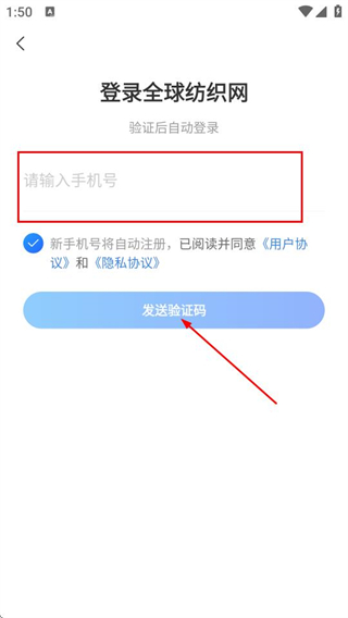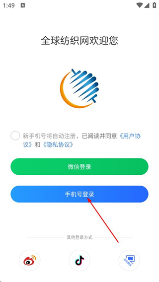 1、在全球纺织网的欢迎页,勾选新手机号将自动注册,点击登录选项,进入登录页面。
