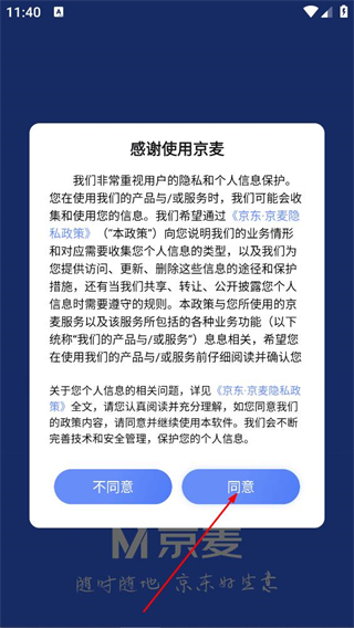 1、在感谢使用京麦弹窗中,点击同意,进入京麦应用首页。