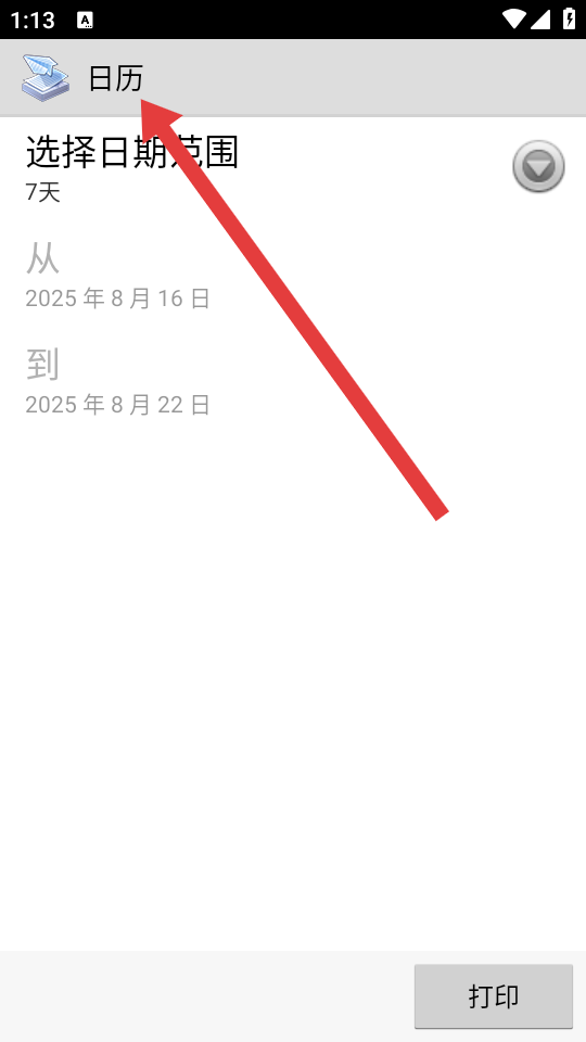 3、打开日历页面,选择日期范围默认7天可调整,设置从需要打印的日期,点击打印生成对应时间范围的日历内容。