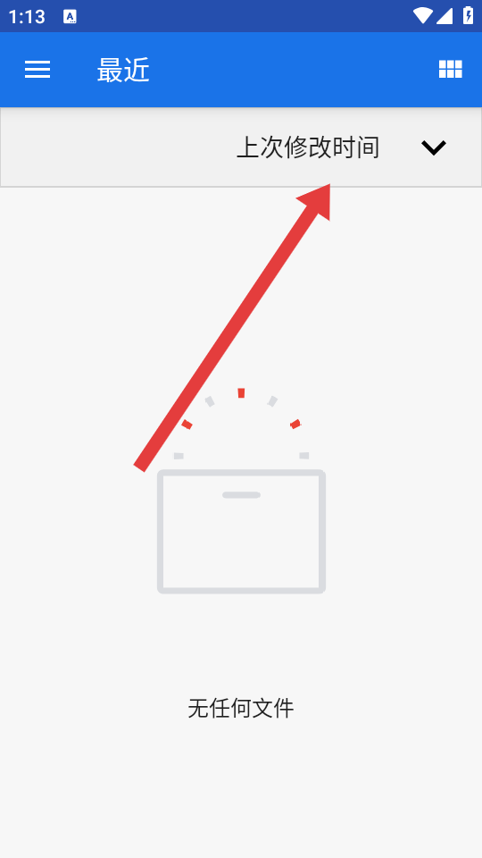 1、在最近的页面,点击上次修改时间旁的下拉箭头,可以按文件修改时间进行筛选显示自己的内容。