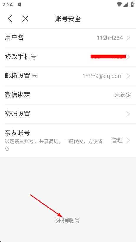 4、在账号安全页面,点击注销账号,可进行账号注销操作。