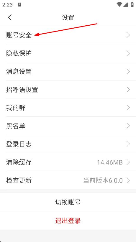 3、在设置页面,点击账号安全,进入账号安全页面。
