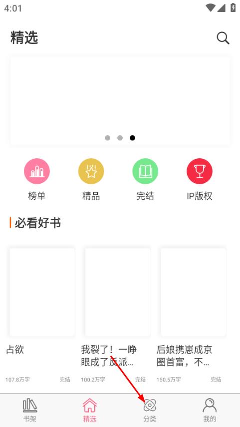 1、打开香网小说,点击页面底部的分类,进入分类书库页面。