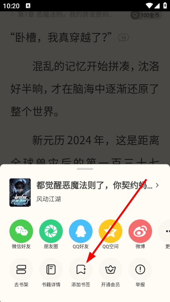 3、在弹出的操作菜单中,找到并点击添加书签按钮,即可成功为当前阅读位置添加书签,方便后续快速找到该章节继续阅读。