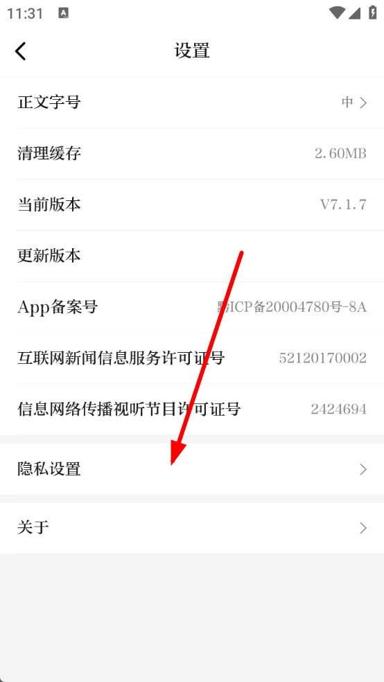 2、进入设置页面后,点击隐私设置。