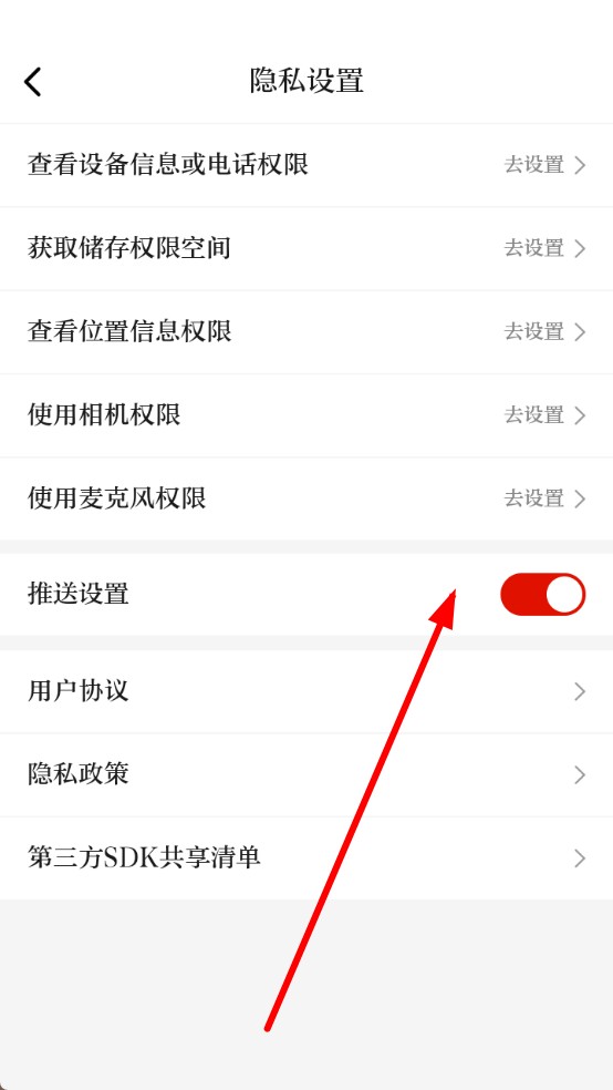 3、找到推送设置,点击其右侧的开关按钮,将其切换为关闭状态,即可关闭推送消息。